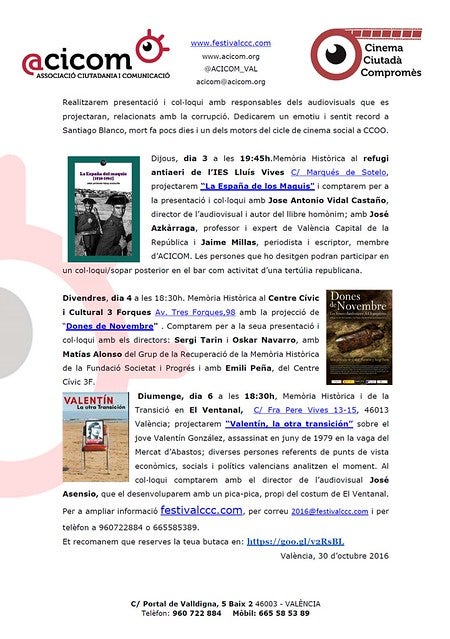 AVANÇ DE LA PROGRAMACIÓ DEL FESTIVAL CINEMA CIUTADÀ COMPROMÉS