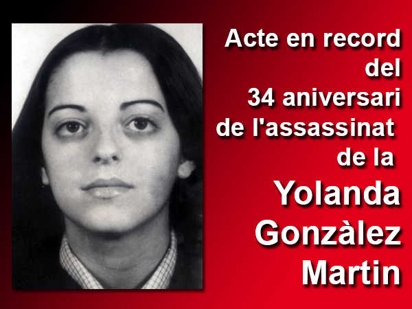 Per no oblidar, la Plataforma de familiars, amics i companys de Yolanda González organitza un acte el proper divendres 14 de febrer a les 18.30 hores a les Cotxeres de Sants en el que es recordarà l’actualitat de la seva lluita,