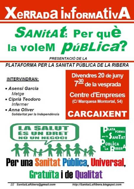 Des de la seua constitució, AJUDA forma part de la plataforma per la sanitat pública, per què considerem que la defensa d’aquest dret és fonamental.
