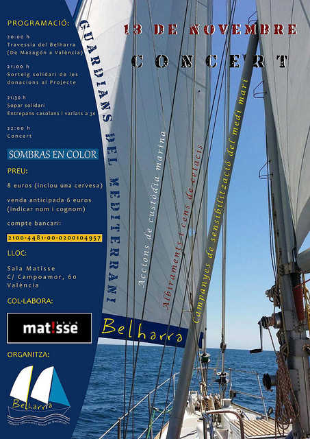 Les 6 associacions integrants d’aquest projecte pioner a la Comunitat Valenciana han organitzat per al proper dijous 13 de novembre una festa benèfica a la Sala Matisse de València amb la finalitat de recaptar fons per posar a punt el veler Belharra.