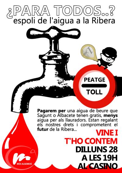 D’aquesta manera encetem a la Ribera la campanya de consciència que ha de dur COMPROMÍS PER L’AIGUA per tal d’informar a la gent el frau que han muntat.
