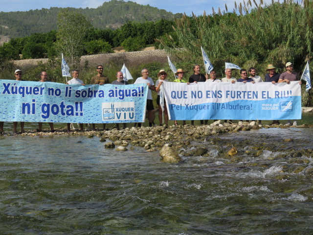 “La volen per al negoci i l’especulació” ha manifestat el portaveu de Xúquer Viu, Paco Sanz. “A Alacant no fa falta aigua si es posen en marxa les dessaladores que estan sense funcionar i que tants diners han costat. El que no poden pretendre és que un riu, que a penes cobreix les pedres del seu llit en el seu curs baix, solucione els problemes causats per la sobreexplotació dels aqüífers del Vinalopó”. “No és un problema de solidaritat. On no hi ha no es pot donar”.