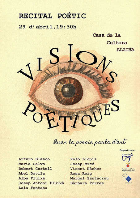 Recital poètic “Visions poètiques” que se celebrarà el pròxim dimecres a Alzira.