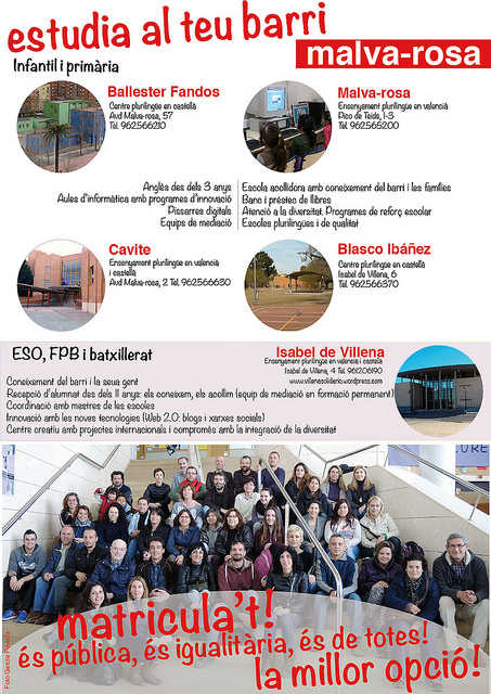 Es repartirà aquest fullet conjunt a tots els centres de la Malva-rosa i al barri.