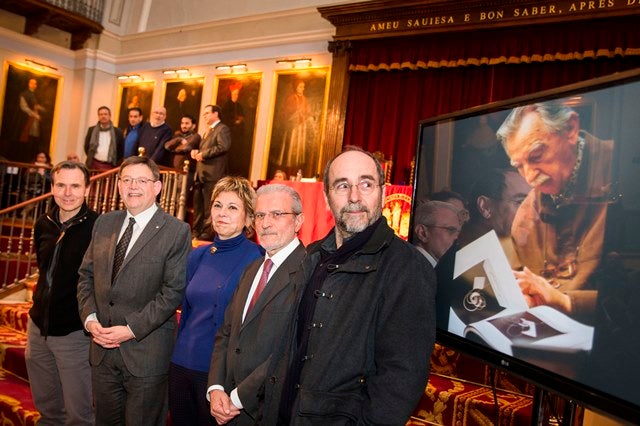La Universitat de València ha lliurat aquest dimecres la Medalla de la institució a l’escultor Andreu Alfaro, a títol pòstum, en un acte acadèmic copresidit pel rector de la Universitat, Esteban Morcillo, i el president de la Generalitat, Ximo Puig. També hi han assistit els consellers Vicent Soler, Vicent Marzà i Manuel Alcaraz. En el transcurs de la sessió, els tres fills d’Alfaro han rebut la màxima distinció de la Universitat de València.