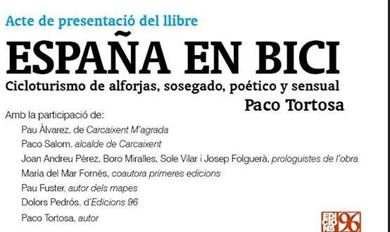 Serà el pròxim dissabte 21 de maig al Magatzem de Ribera de Carcaixent. Amb l’autor i molts companys de la bici.