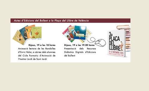 Del 19 al 22 de novembre de 2015 participarem en la 3a edició de la Plaça del llibre (Octubre Centre de Cultura Contemporània. c/ Sant Ferran, 12 de València). Allí estaran els nostres llibres i hi haurà signatures d’escriptores i escriptors i moltes altres activitats.