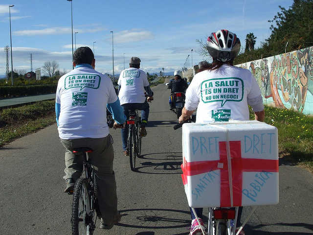 Les veïnes i veïns que conformem l’assemblea de treballadores i usuaris per la sanitat pública , rebutgem la imposició de ser atesos en un hospital amb ànim de lucre el criteri del qual de funcionament és el màxim benefici entre els accionistes i no la salut de la població , així mateix ens solidaritzem amb els i les treballadors d’aquest hospital que han patit i pateixen jornades de treball molt superiors als de la sanitat pública (200 hores anuals més en el cas dels facultatius) , manques en els recursos necessaris per fer correctament el seu treball i la falta de personal suficient i qualificat perquè no es posi en perill la vida i la salut de les persones .