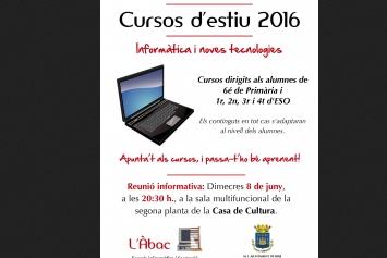 Amb motiu de la posada en marxa dels cursos d’estiu d’informàtica i noves tecnologies 2016 es realitzarà a la sala multifuncional de la segona planta de la Casa de Cultura de Biar una reunió informativa a les 20:30 del pròxim dimecres 8 de juny per als pares i mares que puguen estar interessats/des en que els seus fills i filles els realitzen.