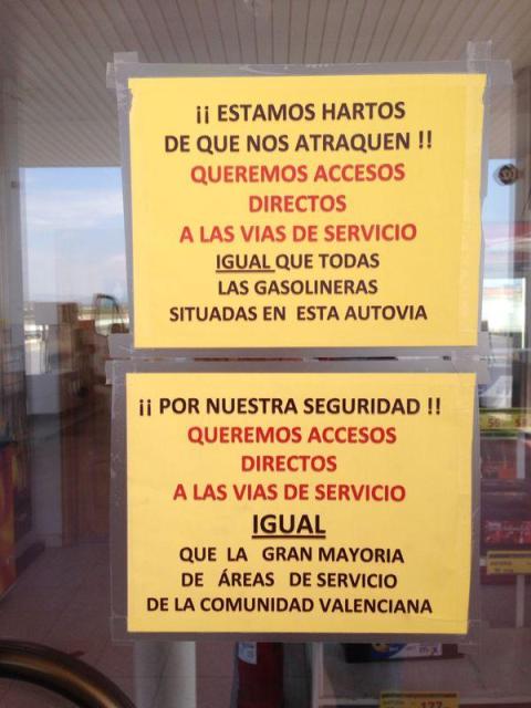 Igualment, alguns establiments com les gasolineres, en concret la que està situada en la mateixa Autovia d’Ademus (CV-35), han mostrat la seua preocupació i malestar pels continuats robatoris als que estan sotmesos, reclamant a més accessos directes a la mateixa autovia per millorar la seguretat. Col·locant un cartell-denuncia sobre estos fets a l’entrada del local.
