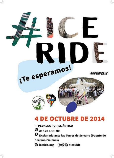 La cita a València, convocada per Greenpeace Comunitat Valenciana, València en Bici-Acció Ecologista Agró i Bici Club València, arrancarà a les 17:00 hores des de les Torres de Serrans. Els participants han sigut convidats a vestir de blanc per a crear una marea blanca com el gel, que recórrega els carrers de la ciutat. Adjuntem el cartell de la convocatòria i esperem comptar amb la teua presència.