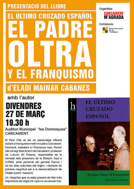 Carcaixent M’agrada reprèn el seu programa d’activitats amb la presentació d’un estudi històric sobre la figura del Pare Miguel Oltra, escrit per l’historiador Eladi Mainar i que va merèixer el premi Valldigna de l’any 2014, atorgat per la Mancomunitat de Municipis de la Valldigna.