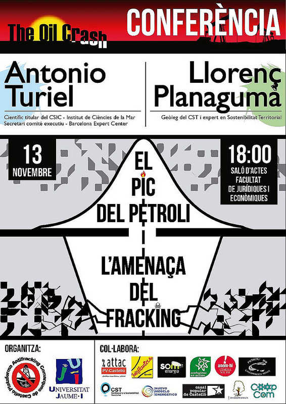 Organitza: Plataforma Antifracking Comarques de Castelló, Universitat Jaume I, amb la col·laboració d’ATTAC, Columbretes Netes, Centre per a la Sostenibilitat Territorial, Cimera Social, Casal Popular de Castelló, Ecologistas en Acción, Amics de Palanques, CoopCom, Som Energía.