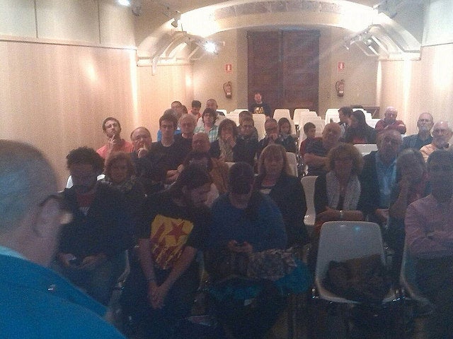 Abans de començar la xerrada d’Agustí Barrera sobre Els Fets d’octubre de 1034, els representants dels col·lectius que s’han adherit al Manifest de la Comissió Jaume Compte i Canelles 2015 van fer una salutació en aquest ordre els representants del CADCI, CUP Nord-Oriental, Som Joves, ERC Castelló d’Empúries i Poble Lliure.