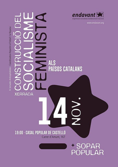 La construcció del socialisme feminista als Països Catalans busca trobar respostes a aquestes relacions d’explotació des del marc de la lluita de classes, busca posar sobre la taula el vincle entre el treball productiu i el treball reproductiu, situar la societat catalana en l’era de l’apartheid social globalitzat, per tal d’orientar la nostra lluita per una emancipació nacional, de classe i de gènere, amb una relació de solidaritat vers els demés pobles de la Terra.