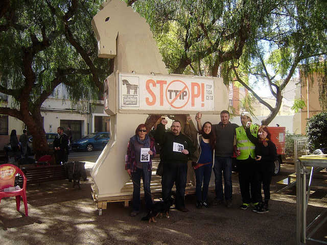 Per tot açò, la unitat sorgida de la lluita contra aquests tractats injustos les ha portat a la construcció d’un cavall, similar al de Troia, ja que de la mateixa manera que van penetrar els aqueus a Troia ocults en el ventre del cavall, del ventre dels Tractats una vegada aprovats i ratificats sorgirà una onada de privatitzacions i de reduccions de drets i garanties dels ciutadans, un tsunami d’una dimensió tal que les polítiques d’austeritat imposades per la Troika semblaran una simple broma.