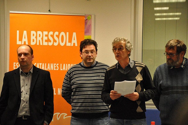 De dret a esquerra Andreu Balent secretari de La Bressola, Gerard Thorent president de La Bressola, Aleix Andreu President dels Amics de La Bressola i Ramon Pifarré vicepresident dels Amics de La Bressola.