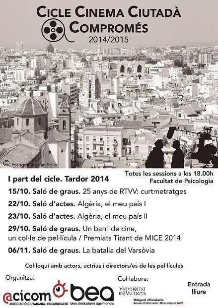 ACICOM (Associació Ciutadania i Comunicació) te com a missió la millora de la dieta mediàtica de la ciutadania valenciana i junt amb el BEA (Bloc d’Estudiants Agermanats) volem potenciar els projectes audiovisuals nascuts al sí de la ciutadania i que aconsegueixen el seu suport. L’audiovisual valencià, en general, i el cinema social especialment, troba molts entrebancs tant a l’hora de la producció i realització,com de la seua distribució. Es tracta d’un mercat reduït i sense vies desenvolupades per aplegar al gran públic. Més ara amb el tancament de RTVV que era una possible (encara que habitualment no ho feia) finestra per poder gaudir de les produccions valencianes. La ciutadania té molt poques opcions de visionar i gaudir obres d’interés fetes a la Comunitat Valenciana, que ajuden a un conformar opinions i gaudir des d’un esperit crític.