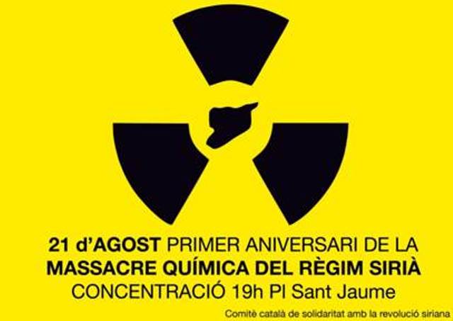 Des del Comitè Català de Solidaritat amb el Poble Sirià, ens adherim a la convocatòria internacional per al proper dijous, 21 d’agost, aniversari de la massacre química perpetrada pel règim de Baixar al-Assad als barris de la perifèria de Damasc. Es una ocasió per recordar que la situació de l’Iraq o els atacs sionistes contra Gaza han demostrat que el destí de la revolució siriana està connectat a la situació en tota la regió. La lluita dels sirians per la dignitat, la llibertat i l’autodeterminació és inseparable de la lluita dels palestins contra el sionisme, dela resistència a Egipte contra el despotisme militar, la lluita pel dret d’autodeterminació dels kurds.