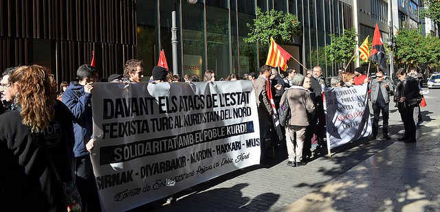 Quasi dos-centes persones es van concentrar al matí del dissabte 16 de gener front al Consolat turc al Passeig de Russafa n. 11, concentració organitzada per la CGT València i el Comité de Solidaritat amb Rojava i el poble kurd, front als atacs al poble kurd per part de la policía i l’exèrcit turc.