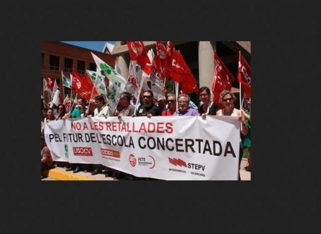 El passat dia 22 de juliol a les portes de la Conselleria d’Educació es varen concentrar els sindicats dels sector de la concertada. Aquesta concentració ve motivada per una manca de transpariència en els concerts educatius i per una reivindicació explícita dels sindicats pel manteniment de llocs de treball en els centres concertats.