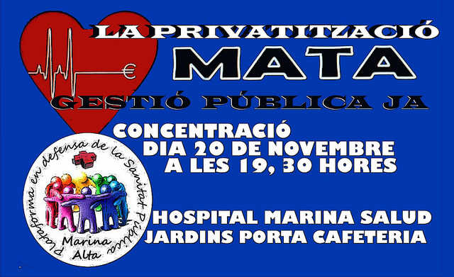 Concentració dia 20-11-2015 a les 19:30 hores a l’Hospital de Dènia (Marina Salud). Plataforma per la Defensa de la Sanitat Pública de la Marina Alta