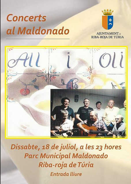 RIBA-ROJA. PARC DE MALDONADO.23:00h. CONCERT DE MÚSICA TRADICIONAL EN VALENCIÀ amb el Grup ALL-I-OLI del Camp de Túria.
