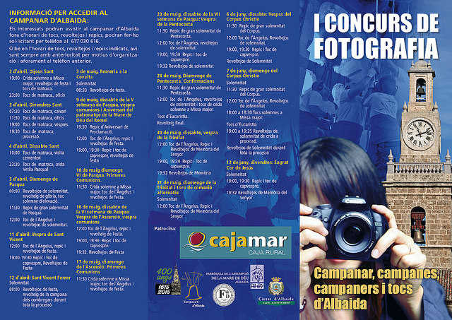 Una de les activitats programades per a esta celebració és el Concurs de Fotografia “Campanar, campanes, campaners i tocs d’Albaida”, competició tant per a fotògrafs professionals com aficionats en el que es poden presentar fotografies en les modalitats de color i blanc i negre. El concurs està patrocinat per Cajamar i els premis per a cada modalitat estan dotats de 300€ per al primer premi, 200€ per al segon premi i 100€ per al tercer, tots ells amb diploma. Les bases es poden consultar en www.campanersalbaida.es o en la pàgina del Facebook dels Campaners d’Albaida.