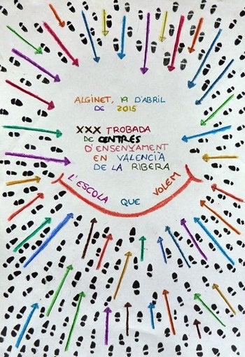 Es tracta d’un dibuix que utilitza el simbolisme de moltes petjades caminant totes cap a una cara somrient: la propera Trobada d’Alginet