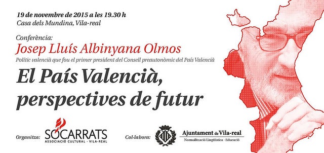 El proper 19 de novembre tindrà lloc a Vila-real la conferència de Josep Lluís Albinyana Serà a les 19.30h. A casa dels Mundina Amb el títol ‘El País Valencià, perspectives de futur’