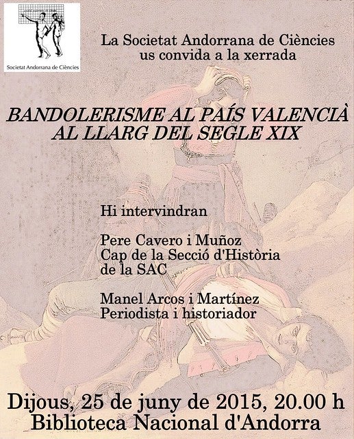 Aquest dijous, 25 de juny de 2015, a les 20.00 h, impartiré la conferència titulada ‘Bandolerisme al País Valencià al llarg del segle XIX‘