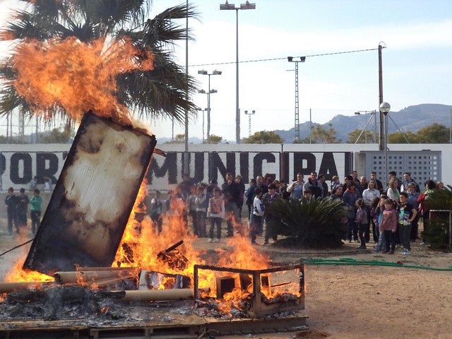 Divendres 14 de març es va cremar la Falla de l’escoleta Mixinetes i del CP el Castell d’Almoines, enguany dedicada a la figura del poeta del poble Vicent Andrés Estellés i als personatges de la seua obra, com la mort, l’amor, la terra, els animals…