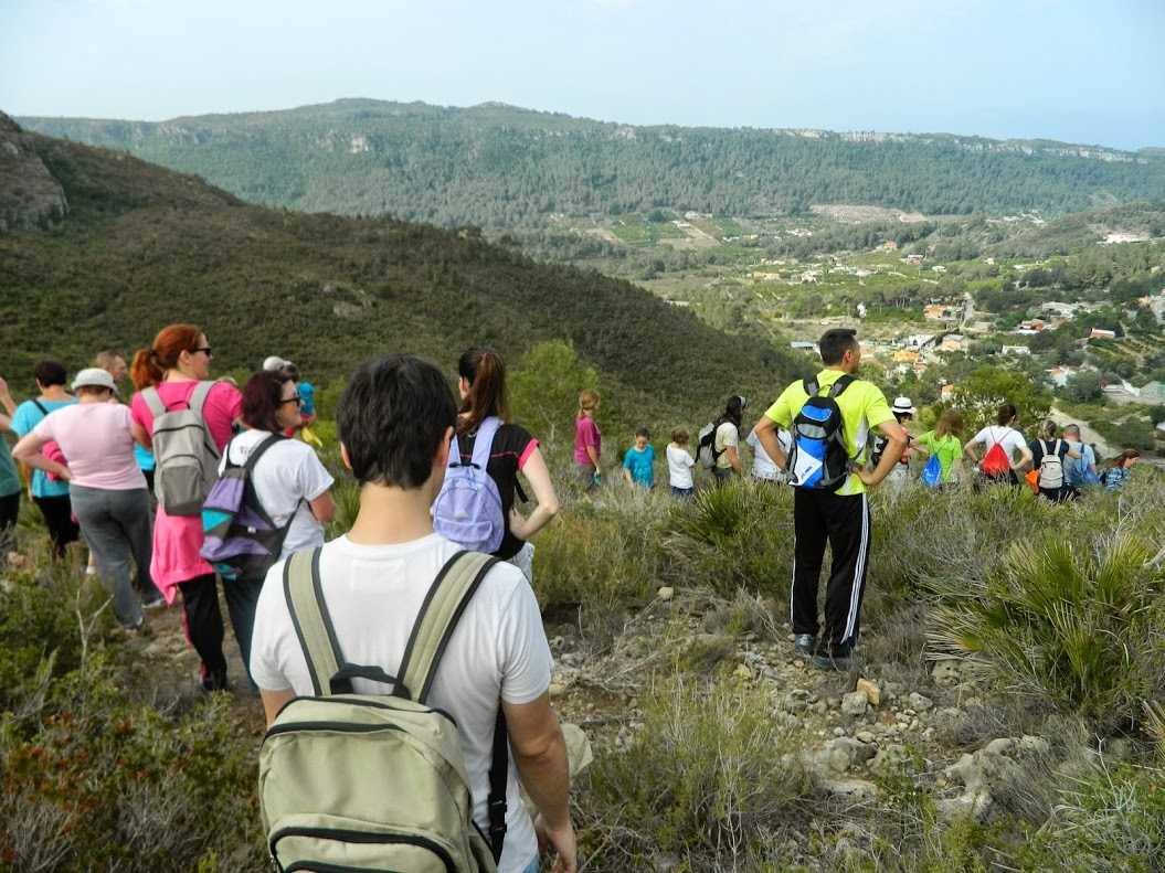 A l’entrada de la senda dels Frares ha estat Miquel Garcia Sauquillo l’encarregat de parlar-nos de la troballa de jaciments arqueològics pertot arreu, el que demostra que des de fa milers anys estos paratges ofereixen condicions de supervivència suficients per fer possible els assentaments humans i que les sendes han estat utilitzades des de molt antic per connectar les diferents valls, bé per raons econòmiques o religioses. Miquel ha explicat que pràcticament tots els jaciments arqueològics han estat espoliats i que són ben escasses les restes que es conserven en museus o han arribat a mans dels experts de les universitats per ser estudiats. La zona que podem albirar amb una simple panoràmica visual reuneix coves, en les parets rocalloses, quasi inacessibles que han estat habitades per diferents inquilins al llarg d’èpoques molt distants, des de la prehistòria fins als col·lectius de místics eremites, que es retiraven voluntàriament a estos indrets per buscar una connexió més espiritual amb Déu o aconseguir un estat anímic impracticable en altres latituds més mundanes. Tot i reconeixent que tenia poques nocions de botànica, Miquel també ens ha explicat que la serra de Corbera també és una zona de gran riquesa vegetal, amb plantes endèmiques protegides i un conjunt de plantes medicinals que van ser la base dels remeis medicinals elaborats per la comunitat religiosa del monestir de la Murta i dels propis remeiers de la comarca de la Ribera Baixa. Precisament a Corbera, un farmacèutic originari de Càrcer fa un estudi profund de la botànica de la serra. Li deien José Borja Carbonell i el seu llibre l’edità l’ajuntament de Corbera fa un grapat d’anys.