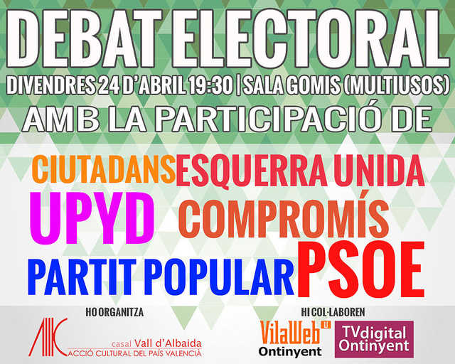 El debat tindrà lloc el proper divendres 24 d’abril a les 19:30h a la Sala Gomis d’Ontinyent.