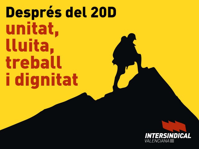 Intersindical Valenciana considera que els resultats electorals suposen un desautorització en tota regla a les polítiques d’austeritat i antisocials practicades pel govern espanyol, que ha vist com ha perdut una part considerable del suport de la ciutadania, tot consolidant-se la tendència iniciada en les eleccions del passat 24 de maig. És per això que, reclama un govern de progrés plural que pose en marxa polítiques a favor de les treballadores i treballadors i dels sectors més desfavorits de la societat.