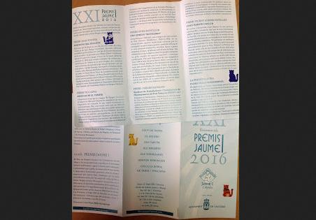 Els premis Jaume I han distingit les persones, comerços i entitats compromeses amb la llengua i la cultura; cada un dels cinc premis diferents que s’atorguen duen el nom d’un personatge valencià que representen una categoria específica. Per l’ordre que indica el cartell, enguany són: