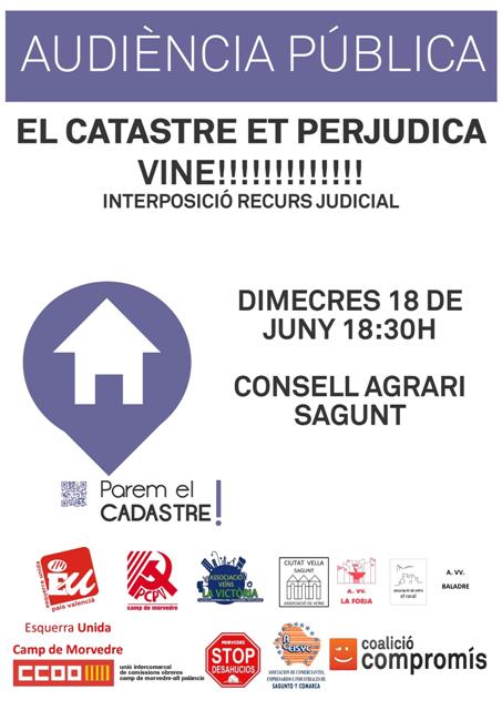 HUI DIMECRES A LES 18:30 AL CONSELL AGRARI AUDIÈNCIA PÚBLICA CONTRA AUGMENT VALOR CADASTRAL, AMB LA PLATAFORMA “PAREM EL CADASTRE”