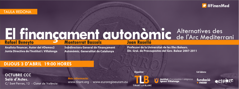 L’ACV Tirant lo Blanc i l‘Institut d’Economia i Empresa Ignasi Villalonga organitzen una taula redona per al pròxim dijous 3 d’abril a propòsit del finançament autonòmic.