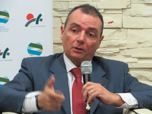 Davant de la desaparició de les caixes d’estalvi valencianes, amb les honroses excepcions de Caixa Ontinyent i Caixa popular, va dir que a ell particularment no li preocupa on siga la seu social d’una Caixa o entitat financera a la que demanar finançament per a les empreses valencianes. Només lamentà la problemàtica de dur endavant les tasques realitzades fins ara de les obres socials de Bancaixa i la CAM. El seu posicionament en un món “globalitzat” és que el finançament de les empreses cal buscar-lo a Brusel.les, a Madrid o allà on calga.