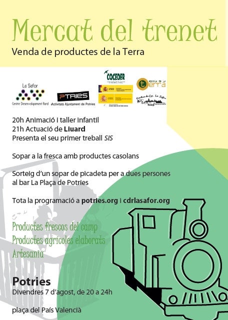 El Mercat del Trenet està organitzat pel CDR la Safor i l’Ajuntament de Potries i finançat pels Ministeris d’Agricultura i Serveis Socials.