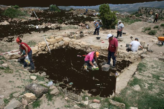 Arasa ha il·lustrat als alumnes-treballadors del taller sobre la ciutat romana abans del començament de les excavacions. La feina del taller d’ocupació s’ha centrat en dues zones del jaciment. S’ha actuat en una antiga vivenda situada al que podria ser l’antic fòrum, o plaça pública, de la ciutat romana. En les tasques s’ha trobat, en primer lloc, la necròpolis islàmica dels segles IX-X.