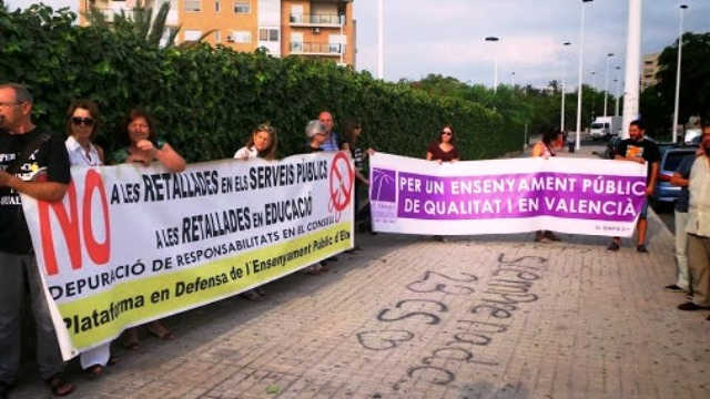 A les portes de l’IES Victoria Kent d’Elx, El Tempir s’ha tornat a concentrar amb els companys de la Plataforma per l’Ensenyament Públic en defensa d’una educació pública de qualitat i en valencià, justament quan hui s’inicien les classes a tots els instituts valencians.