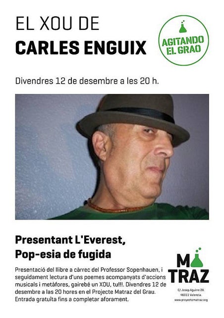 EL XOU DE CARLES ENGUIX Presentant L’EVEREST, el seu darrer llibre de POP-ESIA. A MATRAZ 12 de Desembre a les 20’00 hores Alboraia