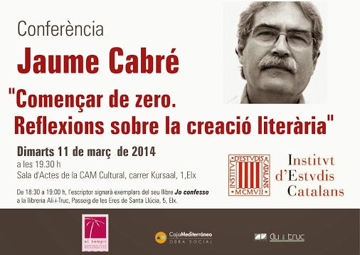 El Tempir i la Delegació d’Alacant de l’IEC organitzen la conferència de Jaume Cabré, “Començar de zero. Reflexions sobre la creació literària”.