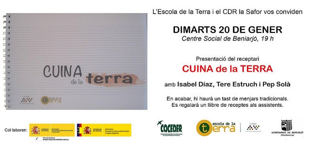 Al llibre “Cuina de la Terra” s’han aplegat 30 receptes de plats de la comarca elaborats amb productes de proximitat i de temporada, com els arrossos, dolços, conserves, salmorres i infusions. Aquest receptari naix de la voluntat d’unir els productes de la terra amb la gastronomia de la Safor.