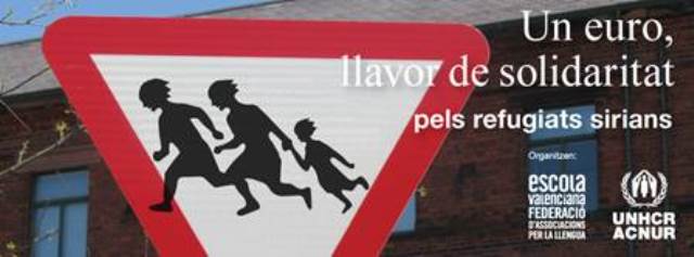 La vuitena edició de la campanya de sensibilització ‘Un euro, llavor de solidaritat’ d’Escola Valenciana se centra en les persones que han hagut de desplaçar-se de Síria pel conflicte bèl·lic que pateixen. Enguany, l’entitat cívica ha comptat amb la col·laboració d’una de les principals agències humanitàries al món, l’Alt Comissionat de les Nacions Unides per als Refugiats