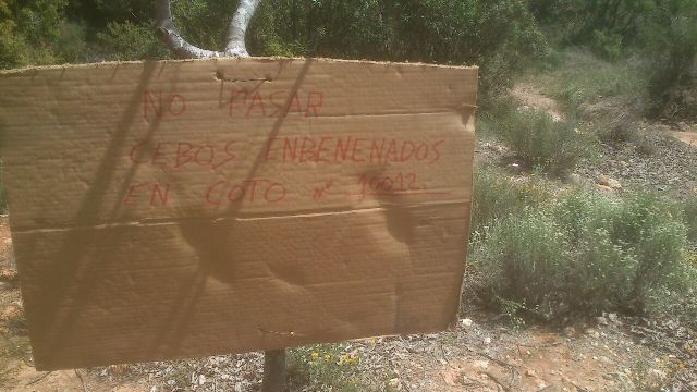 Este cap de setmana, els senderistes i els veïns de Carcaixent (La Ribera Alta, València) que han anat a gaudir de la natura al Paratge Natural Municipal Hort de Soriano-Font de la Parra s’han trobat amb un intimidador cartell, ubicat a pocs metres de la Font de la Parra. En este cartell d’alerta es podia llegir el següent text: “no pasar cebos enbenenadoss en en coto N 10012”.