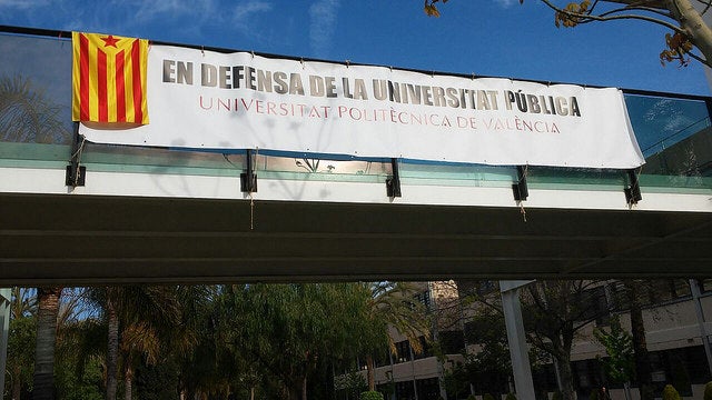 Aquest matí un grup de militants del SEPC(Sindicat d’Estudiants dels Països Catalans) han desplegat Estelades als campus de les universitats de la ciutat de València. Concretament s’han penjat les banderes a l’Àgora de la UPV; a les facultats de Ciències Socials i Magisteri, al campus dels Tarongers, i una estelada gegant a la facultat de Filologia, Traducció i Interpretació, al campus de Blasco Ibañez.