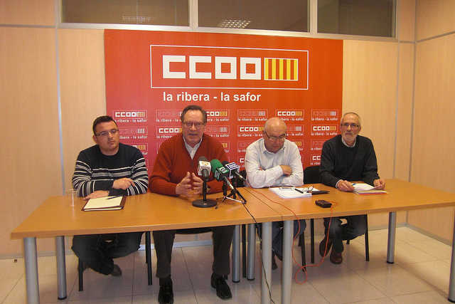 Tant la direcció comarcal de CCOO-PV com els col·lectius d’EUPV han fet palés que s’han destruït quasi un terç dels llocs de treball en la Ribera, quasi 50.000, des que esclatà la crisi en el 2008. A més a més, en el 2013 el 95% dels llocs de treball que s’han creat són temporals, dels quals prop d’un 35% són a jornada parcial (ni tan sols arriba a 8 hores). Per a les dos entitats hi ha una enorme i greu problema d’atur estructural en la Ribera.