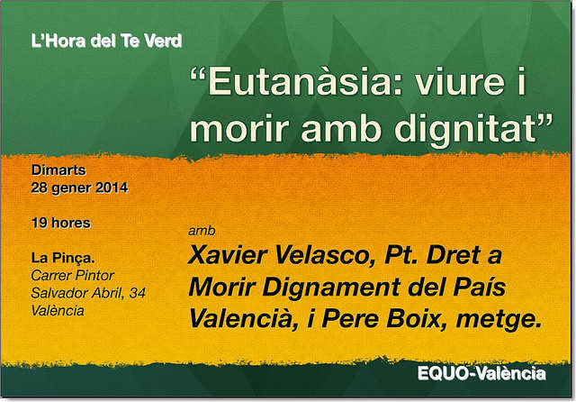 Tal vegada el tema que tractem aquest mes vos semble massa transcendental, inclòs d’una certa incorrecció política tenint en conte tot el que està caient. Però en L’Hora del Te Verd no fugim dels temes per difícils que siguen. I en estos moments, on el govern del PP està aplicant tot tipus de retallades als drets basics de la ciutadania, no hi ha que oblidar que el dret a una mort digna també forma part del catàleg de drets que tenim com a sers humans.